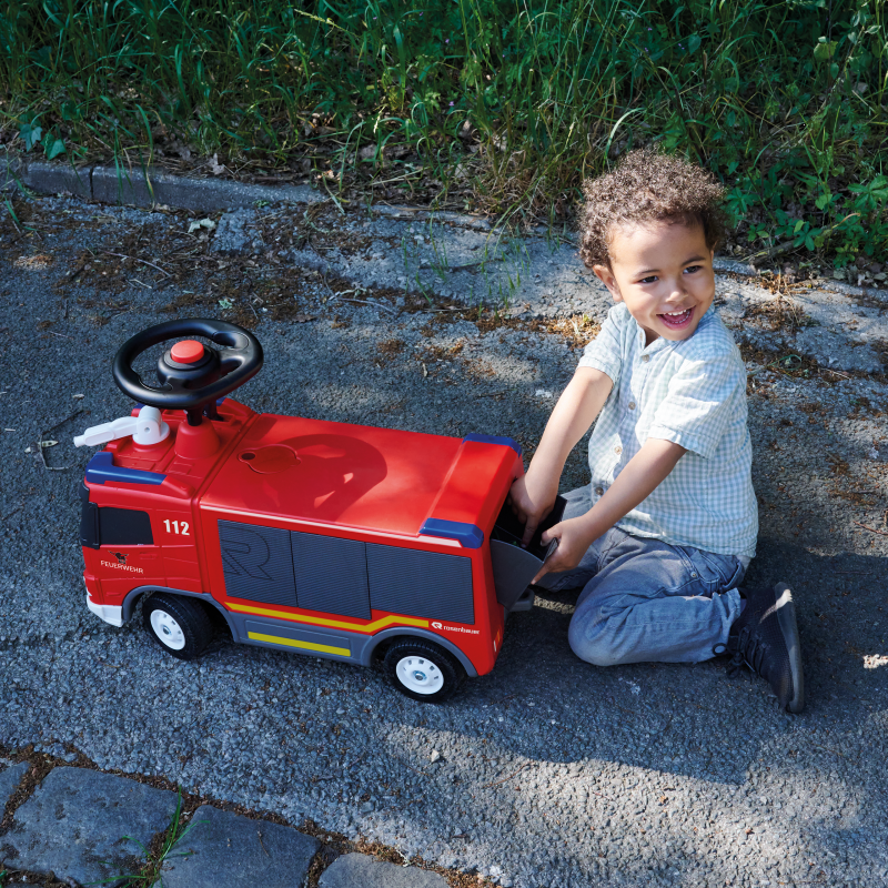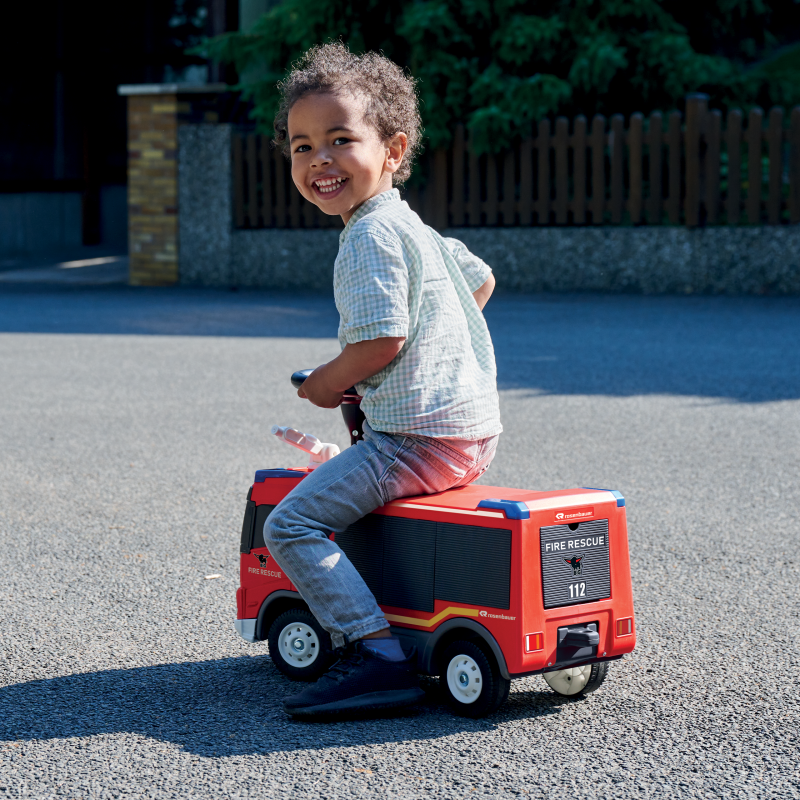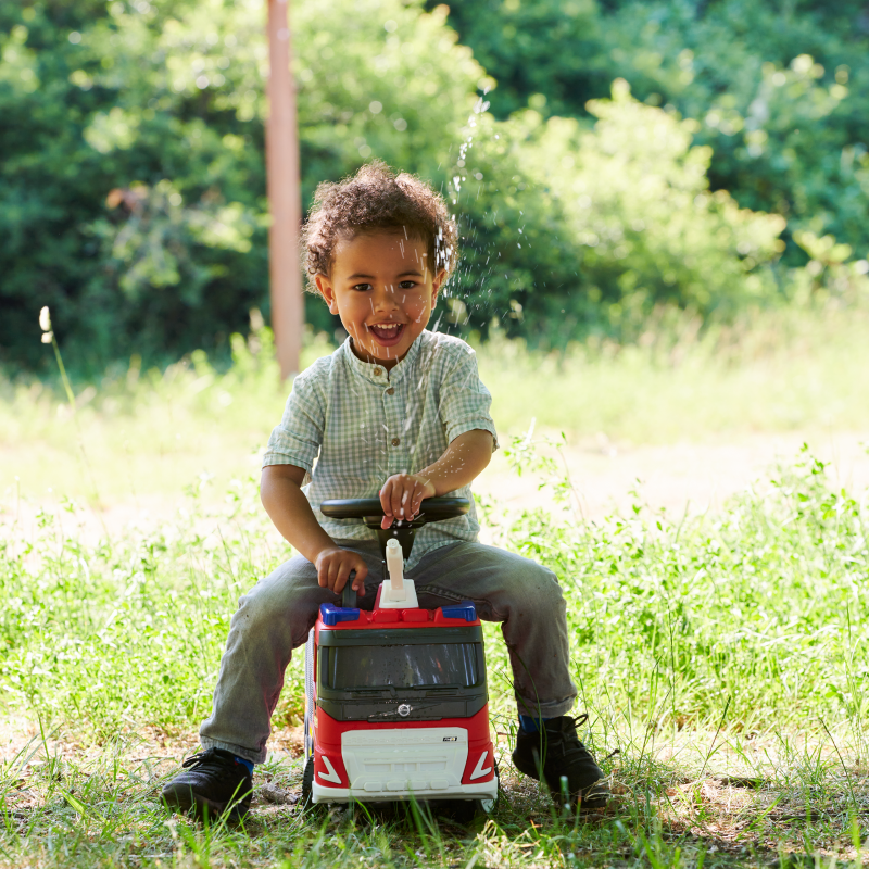 Jeździk Straż Pożarna VOLVO od marki BIG to zabawka dla małych fanów akcji, która naśladuje prawdziwy wóz strażacki strzelający wodą! Dziecko może kierować pojazdem za pomocą kierownicy z klaksonem, co uczy go koordynacji ruchowej i motoryki. Zabawka ma wiele kolorów i detali, na przykład niebieskie światła i napis na boku, który można zmieniać dzięki 10 naklejkom do wyboru. To rozwija wyobraźnię dziecka.