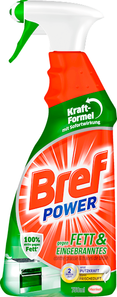 Bref Power Fett & Eingebranntes to skuteczny środek do czyszczenia kuchni, który błyskawicznie usuwa tłuste zabrudzenia i przypalenia. Dzięki innowacyjnej formule grease-stop zmniejsza przyczepność tłuszczu, co ułatwia jego szybkie i efektywne usunięcie.