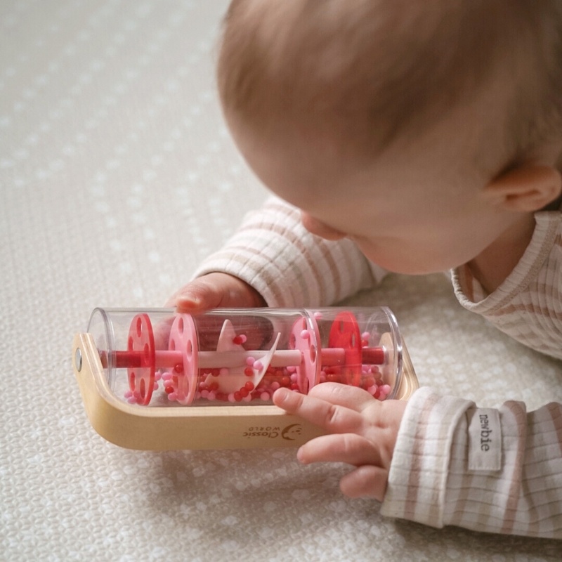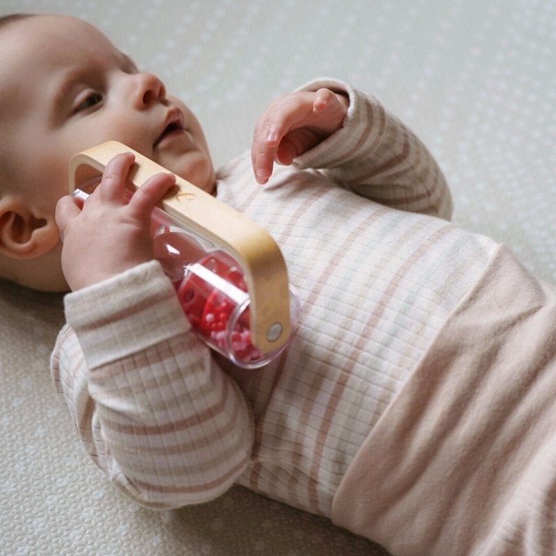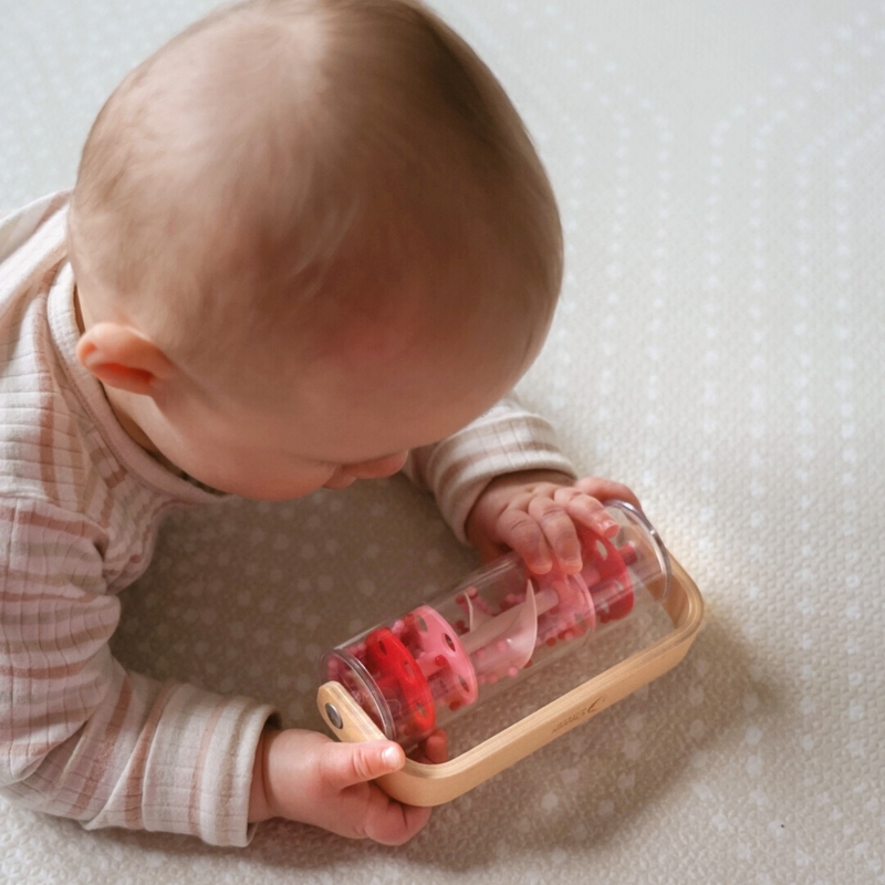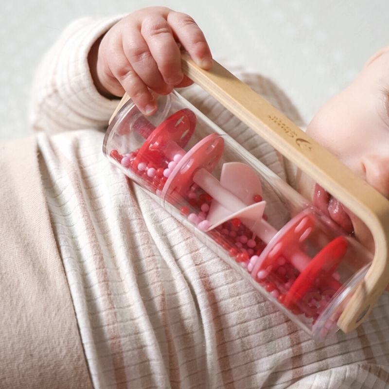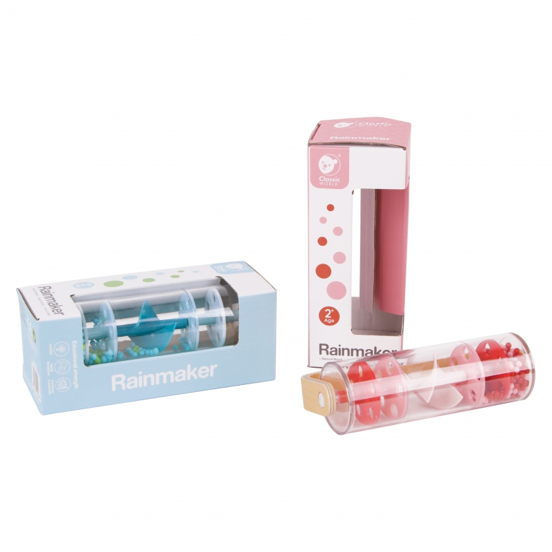 Drewniano-Plastikowa Czerwona Deszczownica z Kuleczkami marki CLASSIC WORLD z przesypującymi się kuleczkami dającymi kojący dźwięk padającego deszczu. Potrząśnij, obróć i obróć, zobacz jak koraliki spadną z góry na dół. Jednym szybkim chwytem możesz przemienić tę zabawkę w grzechotkę, która obraca się o 360 stopni. Świetna propozycja dla rozwoju czuciowego. Idealny rekwizyt do zajęć z rytmiki!