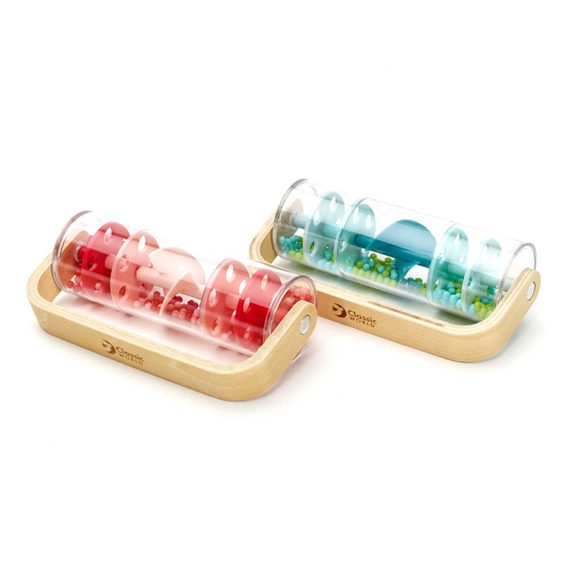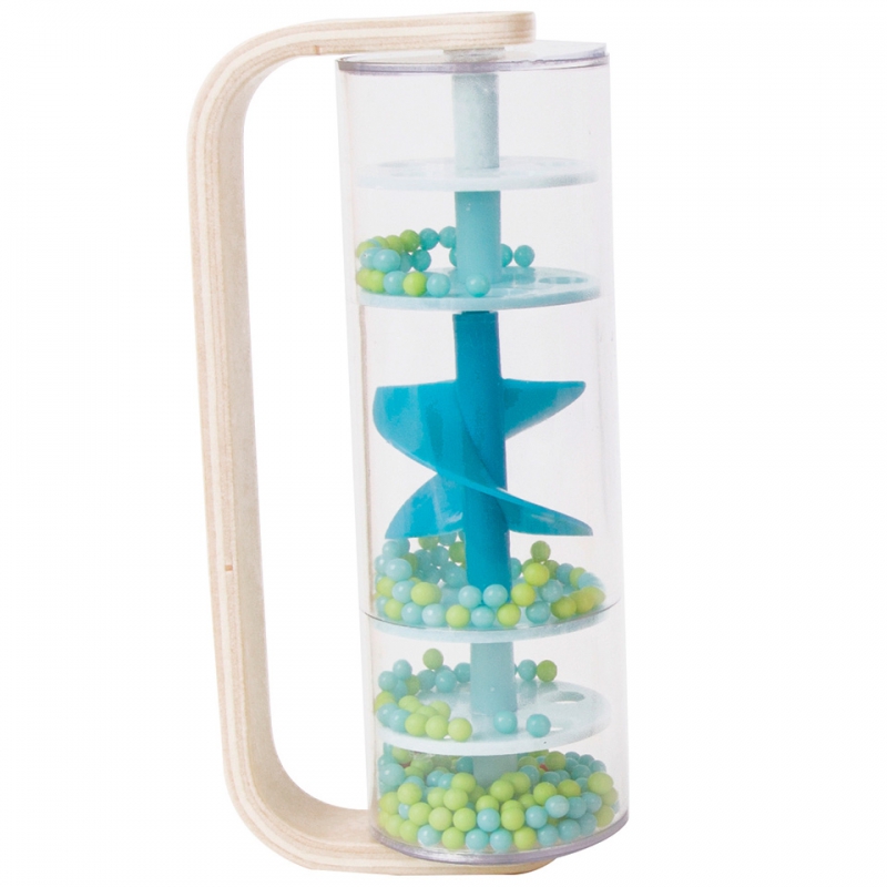 Drewniano-Plastikowa Niebieska Deszczownica z Kuleczkami marki CLASSIC WORLD z przesypującymi się kuleczkami dającymi kojący dźwięk padającego deszczu. Potrząśnij, obróć i obróć, zobacz jak koraliki spadną z góry na dół. Jednym szybkim chwytem możesz przemienić tę zabawkę w grzechotkę, która obraca się o 360 stopni. Świetna propozycja dla rozwoju czuciowego. Idealny rekwizyt do zajęć z rytmiki!