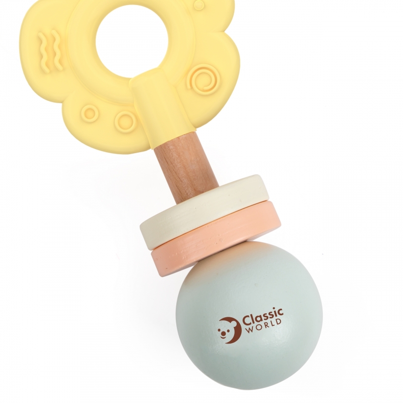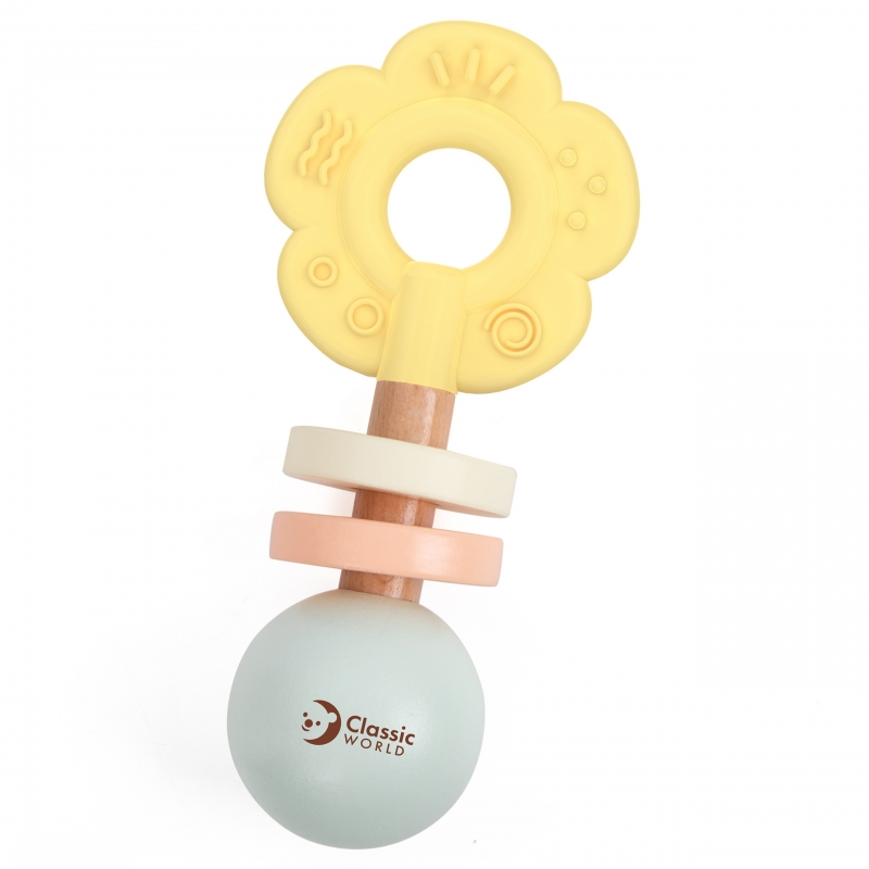 CLASSIC WORLD Drewniana Pastelowa Grzechotka Gryzak 2w1 Kwiatuszek 0+