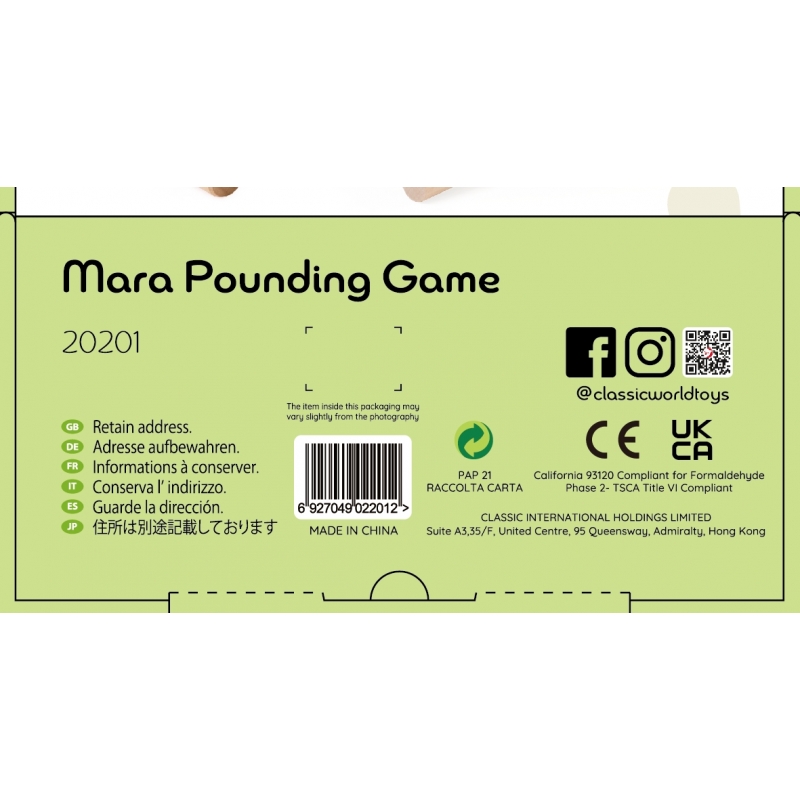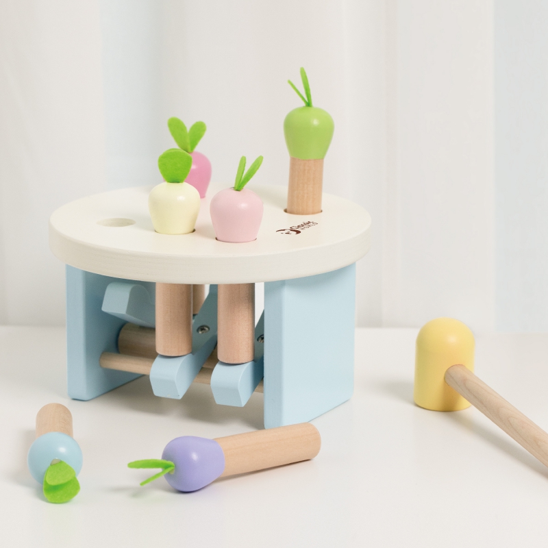 Gra zręcznościowa ”Wbij marchewkę” od marki Classic World to rewelacyjna gra, która rozwija refleks, spostrzegawczość, zdolności manualne oraz zmysł wzroku u malucha. Delikatne pastelowe kolory, przyciągają wzrok i sprawiają, że dziecko chętniej sięga po zabawkę. Gra polega na ćwiczeniu zręczności u malucha, poprzez precyzyjne wbijanie marchewek, które wyskoczyły właśnie z dziurki. Zestaw zawiera 6 marchewek w różnych kolorach,młoteczek, uroczy stelaż w którym umieszczane są marchewki.