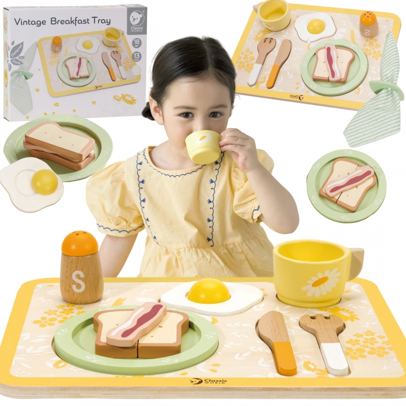 Zestaw Śniadaniowy od marki CLASSIC WORLD zapewni dziecku energię na cały dzień oraz doskonale pobudzi kreatywność maluszka. Zestaw zawiera oddzielne jajko w koszulce, tosty i bekon, nóż i widelec itp. Może zaoferować wiele pomysłów na zabawę, a także pomóc w kultywowaniu dobrych manier przy stole u dzieci.
