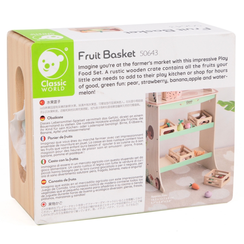 CLASSIC WORLD Zestaw Drewnianych Owoców w Koszyku 6 el.