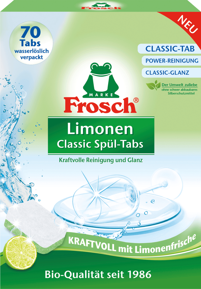 Odkryj tajemnicę nieskazitelnej czystości z Frosch Tabs Classic Limone! Te magiczne tabletki do zmywarki nie tylko doskonale radzą sobie z tłuszczem, ale także otaczają Twoje naczynia intensywnym zapachem soczystej limonki, sprawiając, że zmywanie staje się prawdziwą przyjemnością!