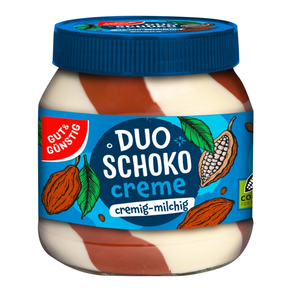 Rozkoszuj się chwilą pełną smaku z Duo-Schoko-Creme! Krem o smaku czekoladowo-mlecznym to prawdziwa uczta dla podniebienia. Doskonały nie tylko na chleb, ale również jako gwiazda deserów, ciast i kreatywnych wafli.
