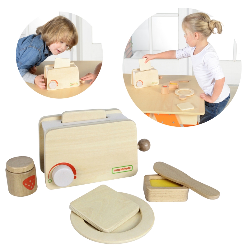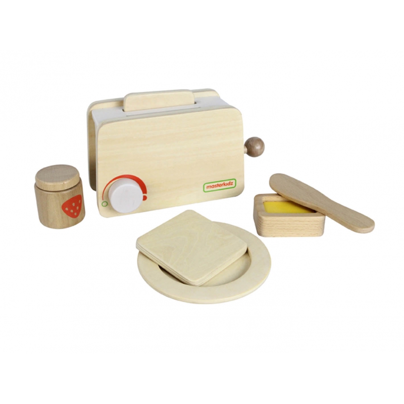 MASTERKIDZ Drewniany Toster + Masło Kromka Nóż Talerz Dżem