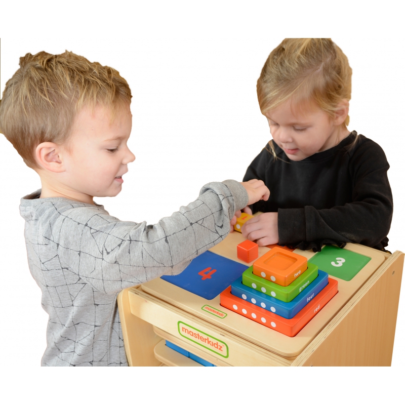 Drewniana piramidka edukacyjna Masterkidz to sensoryczna zabawka, która wspiera wszechstronny rozwój dziecka. Dzięki przemyślanej konstrukcji maluchy mogą układać kolorowe klocki w odpowiedniej kolejności, ucząc się przy tym liczenia oraz rozpoznawania barw.