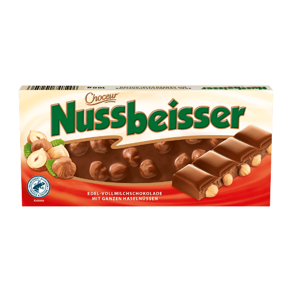 Nussbeisser to harmonijne połączenie doskonałej jakości orzechów laskowych i intensywnie mlecznej czekolady. Każdy kęs tej wyjątkowej czekolady to niepowtarzalne doświadczenie smakowe, w którym chrupiące orzechy laskowe łączą się z delikatnością mlecznej czekolady.