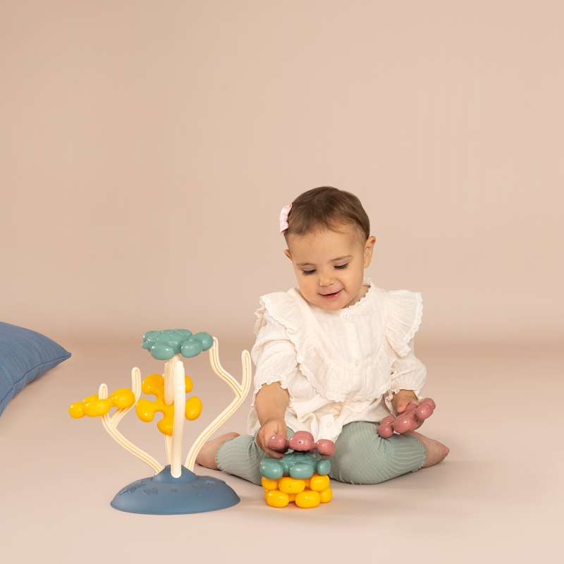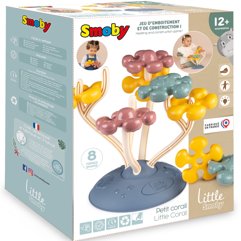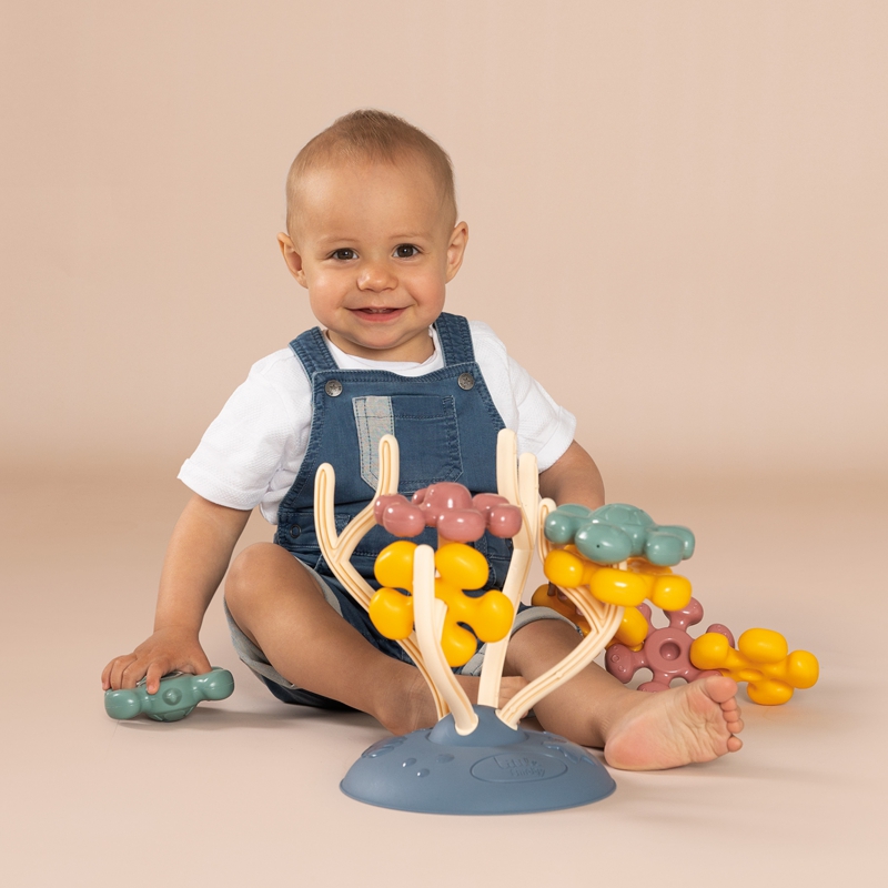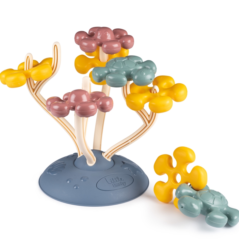 Drzewo Sensoryczne Zabawka Motoryczna od marki SMOBY to zabawka, która naturalnie wspiera rozwój sensoryczny i motoryczny dziecka. Jest odpowiednia dla maluchów od dwunastego miesiąca życia. Zabawka ma podstawę w kształcie koralowca, na której umieszczone są duże, kolorowe elementy. Na koralowcu można dowolnie układać i zamieniać miejscami osiem kształtów przypominających żółwia, ośmiornicę i kwiaty. Wielkość elementów jest dostosowana do małych rączek odkrywców. Zabawki są atestowane i wytrzymałe, co gwarantuje długą i bezpieczną zabawę.