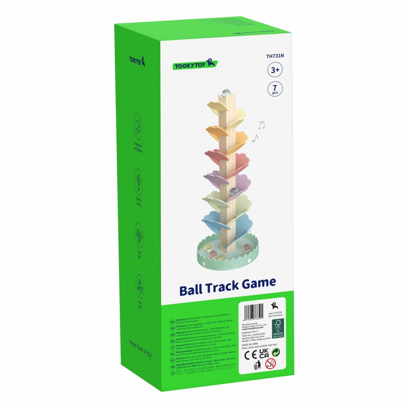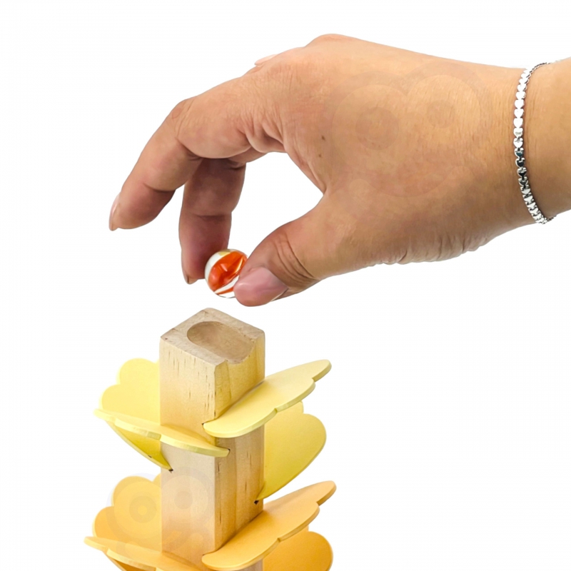Drewniany kulodrom od Tooky Toy to spiralna wieża zapewniająca niekończącą się zabawę. Ten zestaw składa się z 20 kolorowych części , które maluch może z łatwością układać oraz 6 kulek. Puszczaj kulki pojedynczo z najwyższego poziomu i obserwuj jak toczą się jedna po drugiej. Kulodrom dostarcza świetnej zabawy, ale także stanowi doskonałe narzędzie edukacyjne. Dzieci uczą się podstawowych praw fizyki, logiki, a także ćwiczą swoją koordynację ręka-oko. Ponad to całej zabawie towarzyszą przyjemne dla ucha dźwięki– w momencie spadania kulki po drewnianych szczebelkach.