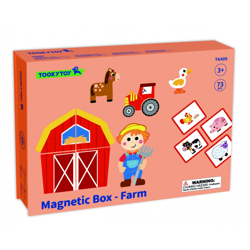 Magnetyczna Układanka Farma Puzzle marki Tooky Toy przenosi dzieci w świat wesołego gospodarstwa. Bogata grafika, mnóstwo magnetycznych elementów i możliwość tworzenia własnych scenek lub układać elementy zgodnie z dołączonymi 12 planszami. Magnetyczne puzzle gwarantują świetną zabawę i naukę przez kreatywność. Zabawa z układanką pomaga maluchom rozwijać motorykę, wyobraźnię i zdolności narracyjne. Dzięki praktycznemu zamykanemu pudełku zestaw sprawdzi się zarówno w domu, jak i w podróży.