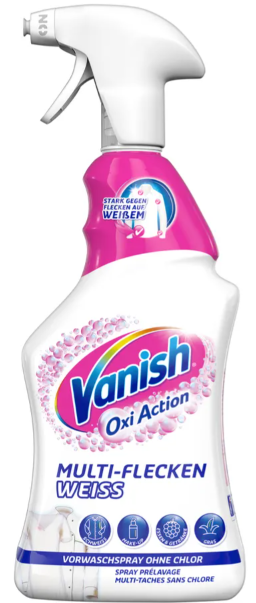 Vanish Oxi-Action Weiss to skuteczny odplamiacz do białych tkanin, który dzięki technologii aktywnego tlenu usuwa nawet najtrudniejsze zabrudzenia. Formuła została specjalnie opracowana, aby skutecznie zwalczać plamy z makijażu, jedzenia, napojów, trawy czy potu, nie uszkadzając przy tym tkanin.