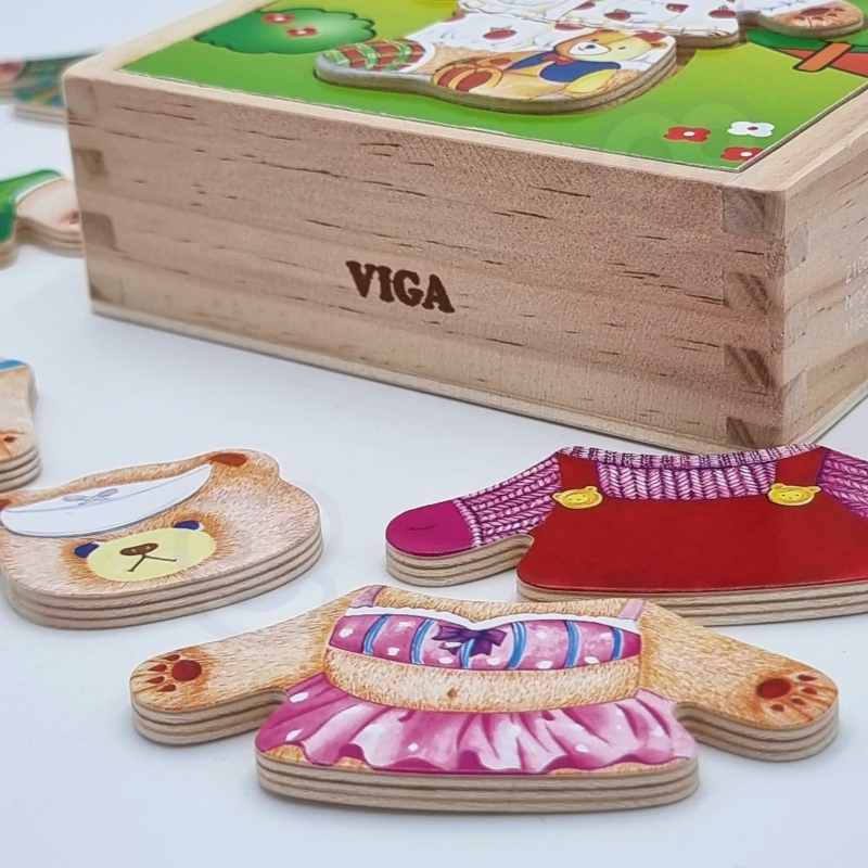 VIGA Drewniana Układanka Logiczna Puzzle Ubierz Misia Dziewczynkę