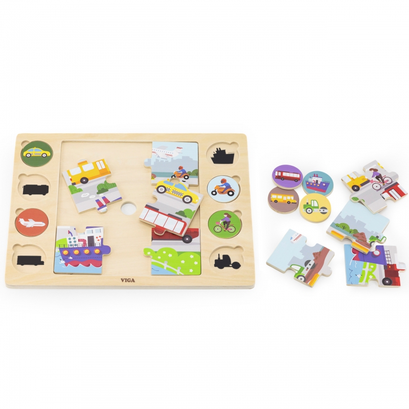 VIGA Drewniane Puzzle Odgadnij po Cieniu – Środki Transportu Układanka 17 el.