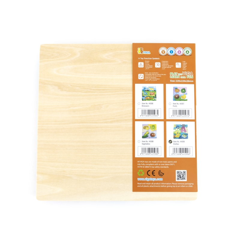 Drewniane puzzle z częściami odzieży od renomowanej marki Viga to jedna z czołowych zabawek, która posłuży nie tylko jako tradycyjna układanka, ale pozwoli dziecku ćwiczyć zdolności manualne oraz rozpoznanie kształtów zwierząt. Taka gra dla dziecka od 12 miesiąca życia pomoże kształtować precyzję ruchów rączek, oraz poprawi koordynację wzrokowo-ruchową, a także pomoże ćwiczyć pamięć, logiczne myślenie i koncentrację. Kolorowe puzzle cieszą oko i zachęcają do zabawy. W zestawie znajdują się 4 puzzle z różnymi zwierzętami o różnych kształtach. Puzzle posiadają uchwyty, dzięki którym maluch z łatwością będzie mógł je podnosić i układać w pasujące miejsce na planszy.