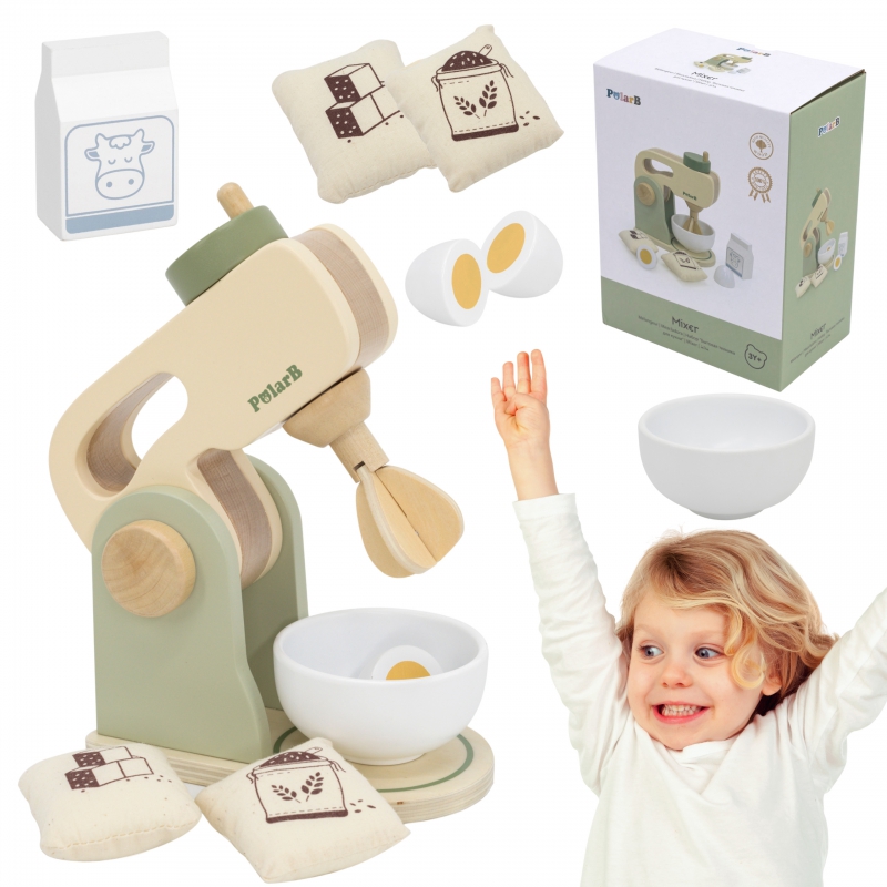 Zielony mikser będzie doskonałym dodatkiem do kuchni lub kącika tematycznego w przedszkolu oraz pozwoli dziecku w domu na zabawę w doskonalenie umiejętności kucharskich. Drewniana zabawka pozwoli na odgrywanie ról wpłynie także pozytywnie na integrację z innymi dziećmi poprzez wspólną zabawę.