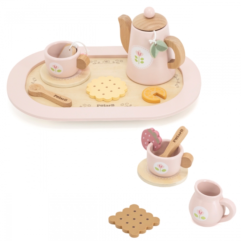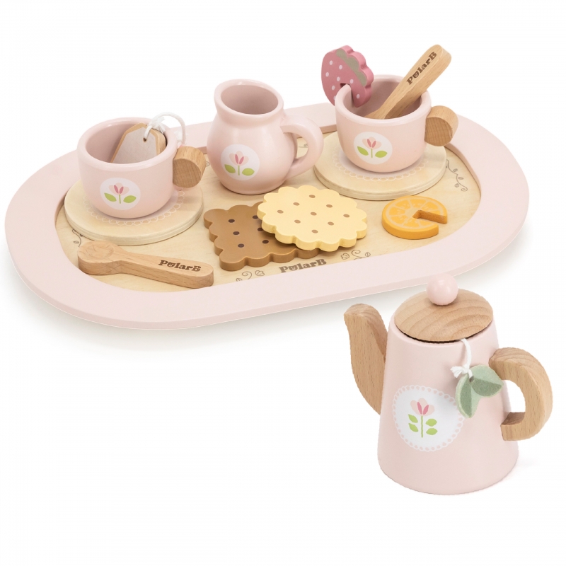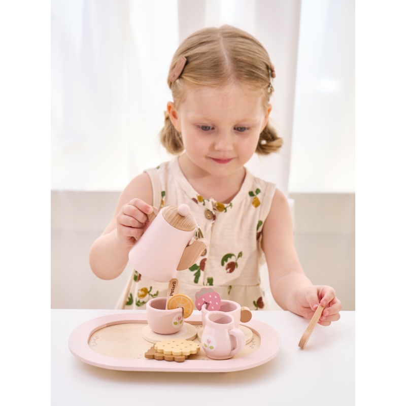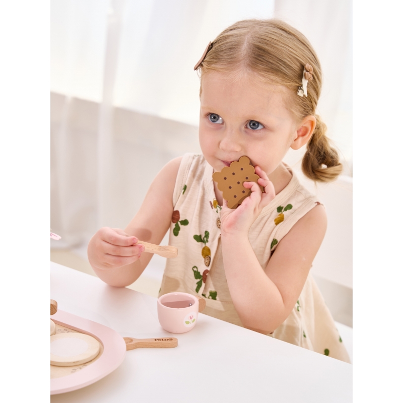 Drewniany Zestaw do Herbaty PolarB to uroczy komplet, który zachęca dzieci do organizowania swoich własnych przyjęć herbacianych. Zestaw zawiera drewniany dzbanek, filiżanki i podstawki, a także różnorodne dodatki jak torebki herbaty, plasterek cytryny czy truskawki. Każdy element jest starannie zaprojektowany, by pobudzać wyobraźnię dziecka i rozwijać jego umiejętności społeczne. Dzięki solidnemu wykonaniu, ten elegancki zestaw posłuży przez wiele godzin kreatywnej zabawy w naśladowanie dorosłych.