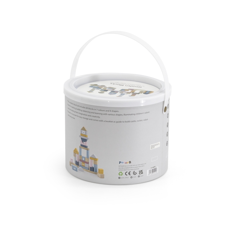 VIGA PolarB Zestaw drewnianych klocków w wiaderku – 60 elementów