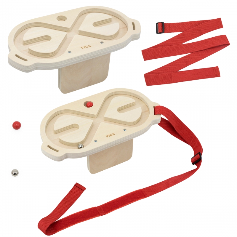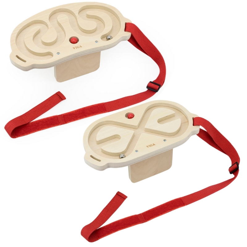 VIGA Zestaw labiryntów do balansowania ciałem to innowacyjna gra ruchowa, która angażuje całe ciało, rozwijając koordynację i równowagę. Dzięki dwóm drewnianym labiryntom i kulkom o różnej masie, zabawa staje się ekscytującym wyzwaniem dla dzieci. Gracze zakładają pas z labiryntem na talię, klatkę piersiową, nogi lub ramiona, a następnie poruszają ciałem, aby wprawić kulkę w ruch i przeprowadzić ją przez labirynt. Zabawki można używać samodzielnie lub rywalizować w parach, co dodaje zabawie dynamiki i integruje uczestników.