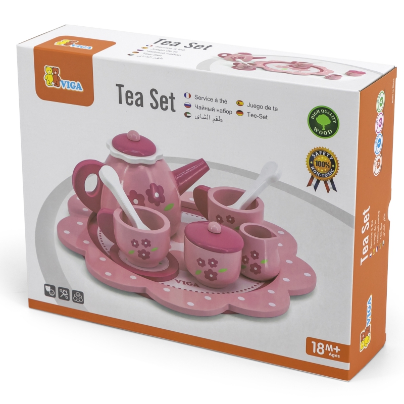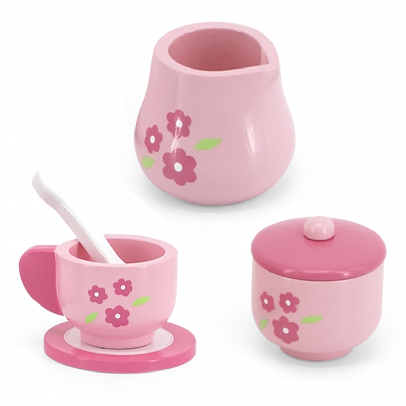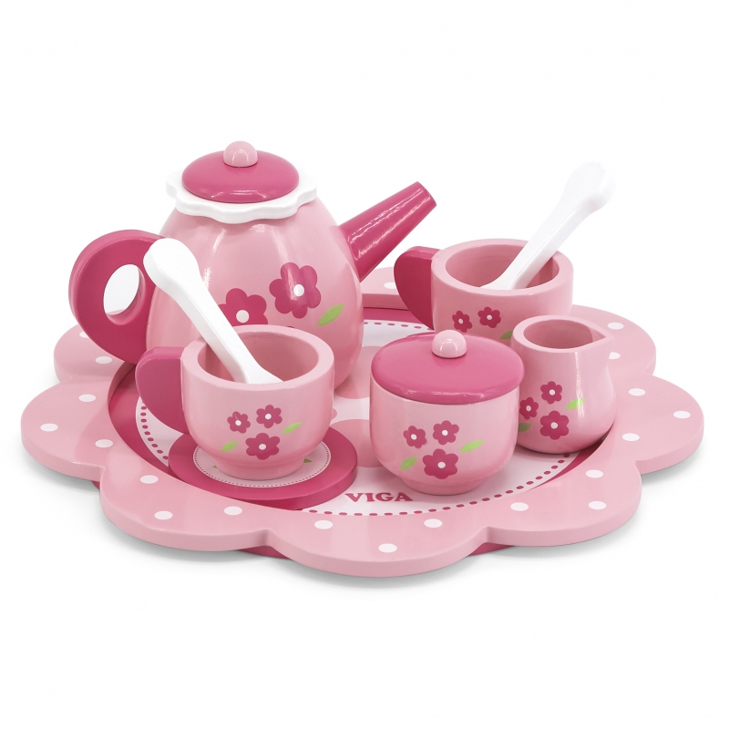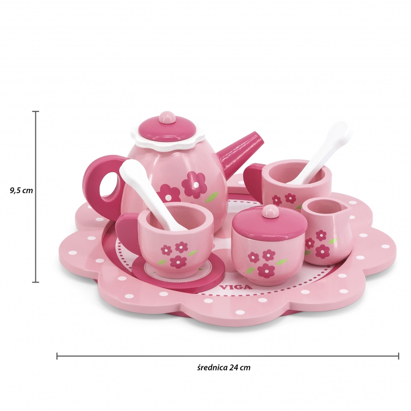 • – w skład zestawu wchodzi 12 elementów – imbryk na herbatę, dzbanuszek, cukiernica, filiżanki, spodeczki, łyżeczki i taca,