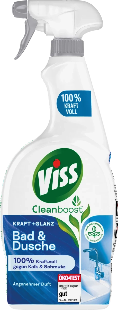Viss Bad&Dusche to wyjątkowy środek do czyszczenia łazienki, który głęboko działa, aby dokładnie usuwać brud i jednocześnie zapewniać połysk bez smug. Dzięki intensywnej formule oczyszczającej, nawet uporczywe plamy, takie jak kamień, woda, czy resztki makijażu, należą już do przeszłości. Cząsteczki Viss skutecznie usuwają zabrudzenia z różnych powierzchni w łazience, w tym z kabiny prysznicowej, wanny, płytek, oraz armatury.
