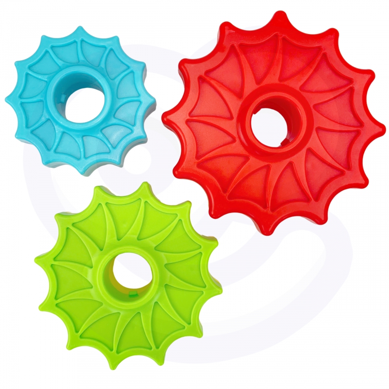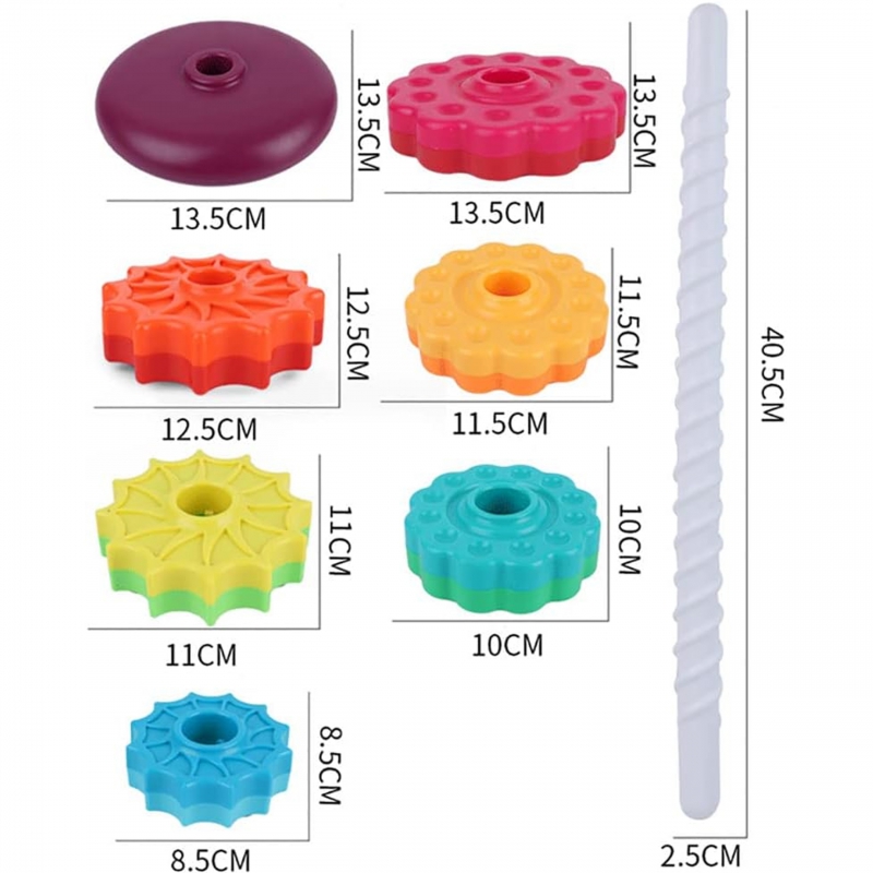 – Zestaw zawiera sześć gwiazdowych krążków, które można układać na sobie, tworząc kolorową i kręcącą się piramidę