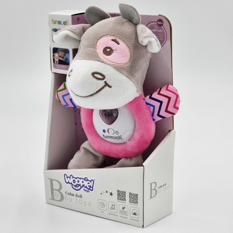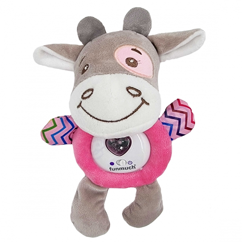 Interaktywny Pluszowy Byczek uspokoi oraz uśpi Twoje dziecko. Zabawka posiada opcję włączenia kołysanki dla Twojej małej pociechy oraz posiada opcję wyświetlania kolorowych światełek, dzięki którym Twój maluch nie znudzi się zabawką. Ten miękki w dotyku miś stanie się przyjacielem Twojego dziecka już od najmłodszych lat. Zabawka jest przystosowana dla niemowląt, dlatego jest miękka i wypełniona watą, przez co nie musimy martwić się o to, że Twoja pociecha może coś sobie zrobić. Dodatkowo pluszaka można bezpiecznie oraz łatwo czyścić (wyjmując mechanizm) bez obaw o jakiekolwiek uszkodzenia.