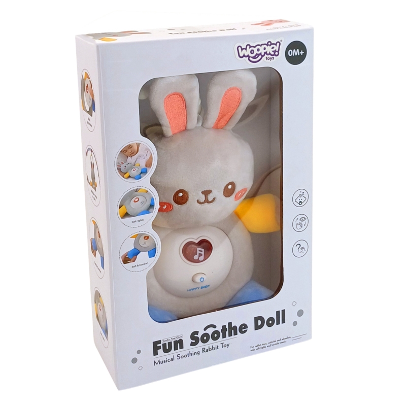 Interaktywny Pluszowy Szary Króliczek uspokoi oraz uśpi Twoje dziecko. Zabawka posiada opcję włączenia kołysanki dla naszej małej pociechy, dzięki której nasz maluch nie znudzi się zabawką. Ten miękki w dotyku króliczek stanie się przyjacielem dziecka już od najmłodszych lat. Dodatkowo pluszaka bezpiecznie oraz łatwo można czyścić (wyjmując mechanizm) bez obaw o jakiekolwiek uszkodzenia.