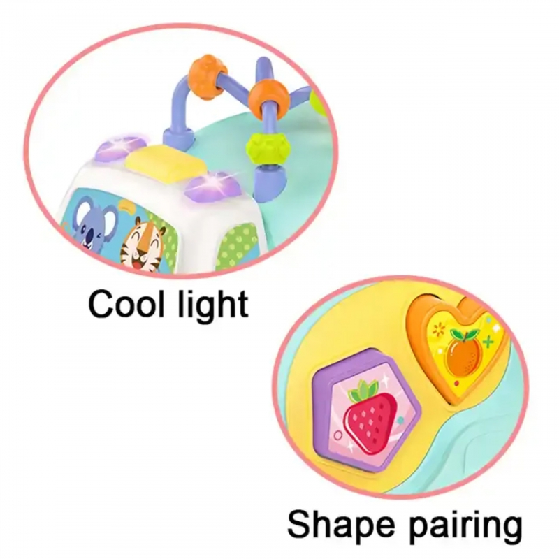 • – zawiera elementy do manipulowania i odkrywania: piłeczki, młotek, klocki, koraliki