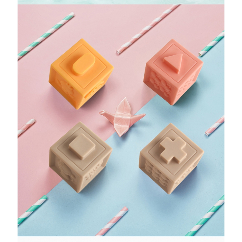 WOOPIE Układanka Klocki Sensoryczne zaciekawią każdego malucha. Dzięki ciekawym kształtom, kolorom i możliwości wydawania dźwięku przy ściskaniu doskonale stymulują rozwój koordynacji wzrokowo-słuchowej, motorycznej dziecka oraz zmysłu dotyku. Klocki mają wypukłe kształty z cyframi i znakami matematycznymi, teksturami/wzorami, wizerunkami zwierząt, kształtami geometrycznymi oraz owocami. Dodatkowo klocki można ze sobą łączyć. Klocki są miękkie i przyjemne w dotyku oraz wydają dźwięki podczas ściskania. Dzięki swojej budowie sprawdzą się również jako gryzak. Klocki dodatkowo maja wartość edukacyjną jak nauka liczenia, dzięki możliwości wykonania prostych działań matematycznych. Dodatkowo dzięki wizerunkom zwierząt dziecko może zapoznać się ze światem przyrody. Produkt w stonowanej kolorystyce przeznaczony dla dzieci od 12 miesiąca życia.