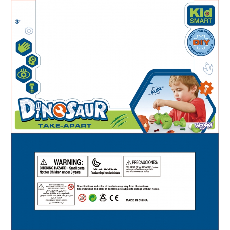 Dinozaur Tyranozaur od marki WOOPIE to idealna zabawka dla miłośników majsterkowania, który wprowadzi Twoje dziecko do czasów prehistorii. Dino posiada ruchome elementy: głowę i kończyny, co daje większe możliwości zabawy. Zestaw zawiera wiele elementów z których dziecko będzie mogło złożyć dinozaura za pomocą funkcjonalnego śrubokręta. Śrubokręt daje możliwość skręcania lub rozkręcania. Po złożeniu, Dino posiada ruchome elementy: głowę, ogon i kończyny, co daje większe możliwości zabawy. Zabawka rozwinie zdolności manualne tzw „małą motorykę” – ruch rączek. Dinozaur to ponadczasowa tematyka uwielbiana przez wszystkie dzieci. Dzięki zabawie prehistorycznym stworzeniem maluch poszerzy zakres swojej wyobraźni i kreatywności.