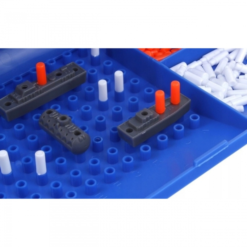 - Rozgrywka: Typy oznaczane są na górnej części planszy.Trafienia oznaczamy pinami pomarańczowymi, chybienia białymi. W przypadku kiedy to my zostaliśmy trafieni to za pomocą pomarańczowego pinu możemy oznaczyć swój statek