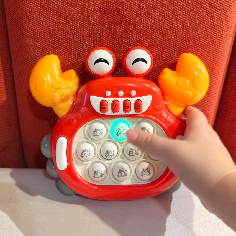 Gra POP IT Krab to zabawka antystresowa, która sprawdzi się już dla najmłodszych. Gra wydaje radosne dźwięki, które zachęcają dzieci do zabawy i urozmaicają rozgrywkę. Zabawka jest niewielka więc, sprawia, że możemy zabrać ją ze sobą. Pop It sprawia frajdę dzieciom oraz dorosłym, którzy chętnie po nią sięgają. Rozwija umysł, zdolności manualne, koordynację wzrokowo-ruchową oraz trenuje spostrzegawczość i pomaga w walce ze stresem.