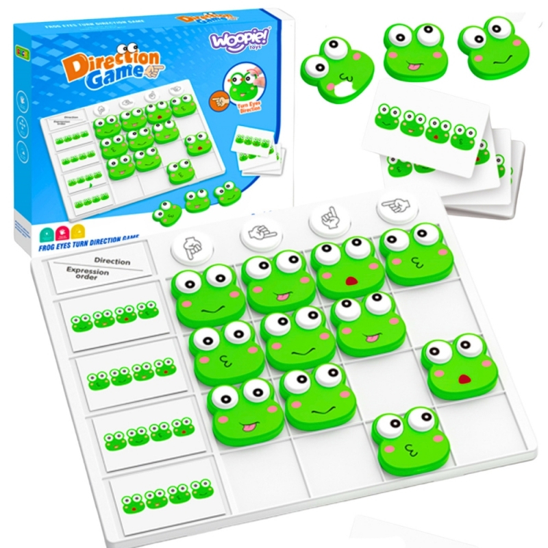Gra dla dzieci Żabie Oczka od Marki WOOPIE, to świetna gra dla dzieci, która pomoże w nauce rozpoznawania stron prawo, lewo, góra, dół. Dodatkowo dzięki niej twoje dziecko wyćwiczy koordynację oko- ręka, oraz będzie trenować małą motorykę. To edukacyjna i innowacyjna zabawka, która zapewnia dzieciom zabawę i naukę. Każda chwila zabawy jest ekscytującą podróżą odkrywania, rozwoju i zabawy. Misją dzieci jest identyfikacja emocjonalnej ekspresji żabek i kierowanie ich oczami tak aby odwzorować wzór. Wyzwania stymulują logiczne myślenie, pomagając dzieciom analizować sytuacje i znaleźć strategiczne rozwiązania. Kiedy angażujemy się w gry, które wiążą się z emocjami i rozwiązywaniem problemów, dzieci ćwiczą swoje umiejętności poznawcze i decyzyjne.