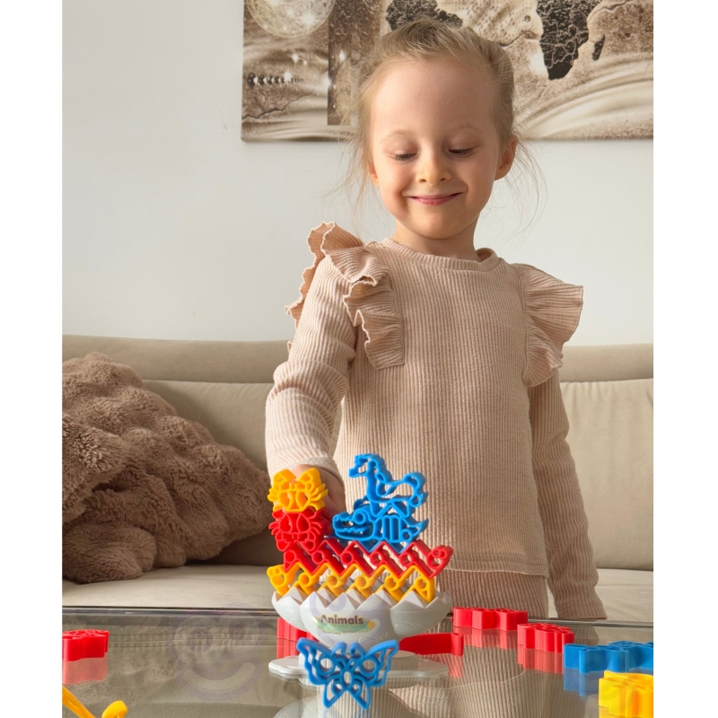 - Układaj zwierzątka: Gracze na zmianę umieszczają klocki w kształcie zwierzątek na balansującym kamieniu, starając się utrzymać równowagę całej konstrukcji.