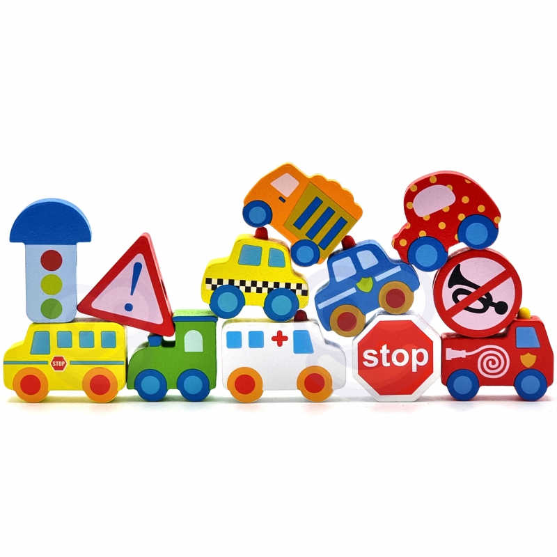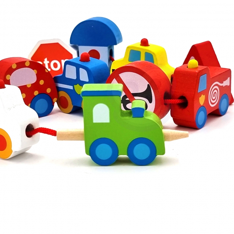 Zabawka w motywie pojazdów to fantastyczna forma nauki i zabawy – maluch może nawlekać drewniane klocki przedstawiające samochody, traktory, karetkę czy znaki drogowe! To nie tylko świetna zabawa, ale również doskonałe wsparcie rozwoju małych rączek, koordynacji i koncentracji.
