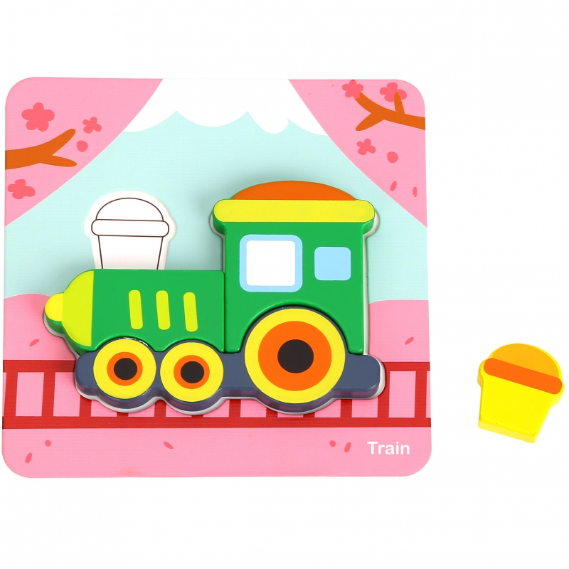 Zestaw składający się z 33 elementów, w tym 6 trwałych kolorowych kart. Zadaniem dzieci jest dopasowanie dużych, drewnianych elementów, układając je zgodnie ze wzorem aby ukończyć kolorową układankę. Specjalnie zaprojektowane wgłębienia skutecznie zapobiegają przesuwaniu się drewnianych elementów, co ułatwia małym rączkom rozwijanie umiejętności motorycznych.