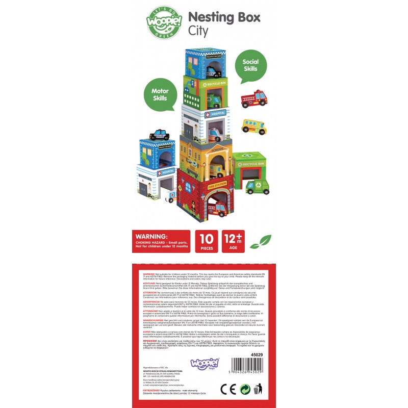 WOOPIE GREEN Układanka Kostki Miasto Pojazdy w Pudełkach + Figurki 10 el.