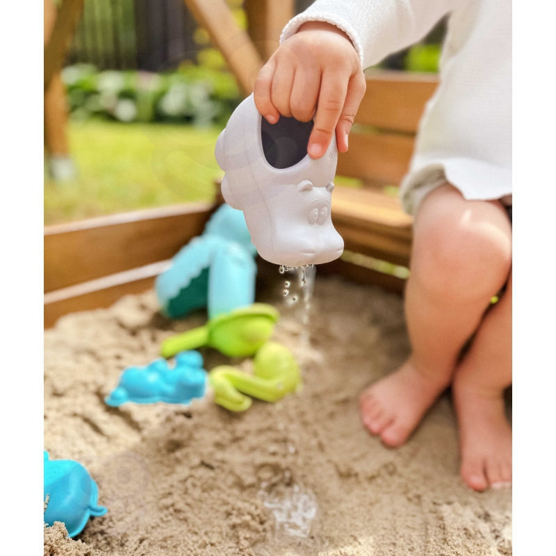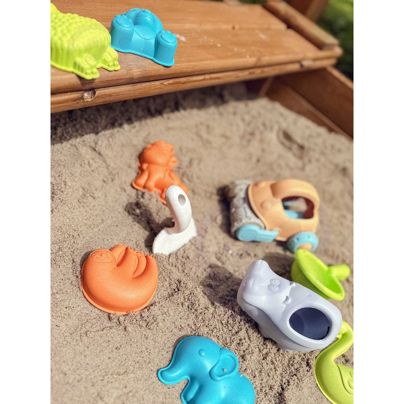Zestaw do Piasku od marki WOOPIE to świetny dodatek do piaskownicy, a nawet ogrodu. Zestaw zawiera 10 elementów: konewkę, 6 foremek, 2 łopatki i samochód. Konewka ma wygodny uchwyt do przenoszenia. Zestaw ma najmodniejszy pastelowy design oraz został wykonany z organicznego i biodegradowalnego (podlegającemu samoistnemu rozkładowi) materiału. Dodatkowo podlega kompostowaniu. Produkt bezpieczny dla dzieci – dezynfekowany w 120 stopniach. Gwarancja super zabawy w piaskownicy, na plaży, a nawet w ogrodzie! Produkt przyjazny środowisku!