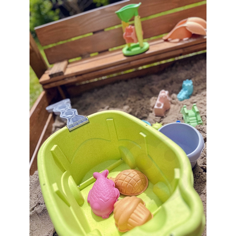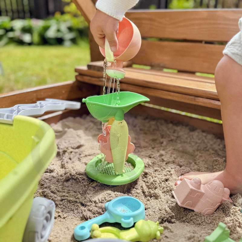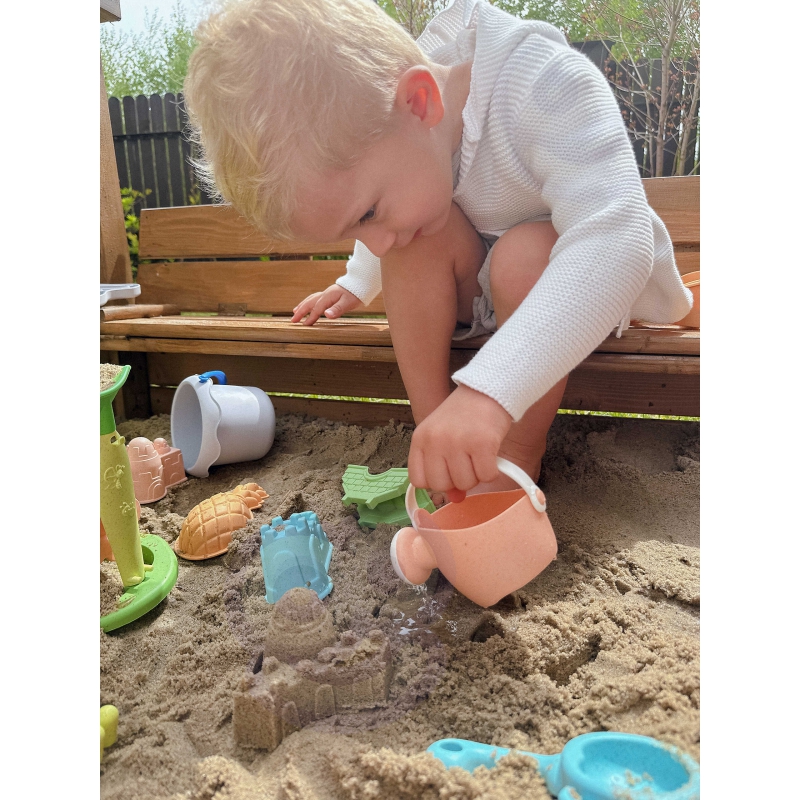 Zestaw do Piasku z Wózkiem od marki WOOPIE z serii GREEN to świetny dodatek do piaskownicy, a nawet ogrodu. Zestaw zawiera 12 elementów: wiaderko, konewkę, kołowrotek z sitkiem, 7 foremek, łopatkę i grabki. Wiaderko i konewka ma wygodny uchwyt do przenoszenia. Zestaw ma najmodniejszy pastelowy design oraz został wykonany z organicznego i biodegradowalnego (podlegającemu samoistnemu rozkładowi) materiału. Dodatkowo podlega kompostowaniu. Produkt bezpieczny dla dzieci – dezynfekowany w 120 stopniach. Gwarancja super zabawy w piaskownicy, na plaży, a nawet w ogrodzie! Produkt przyjazny środowisku!