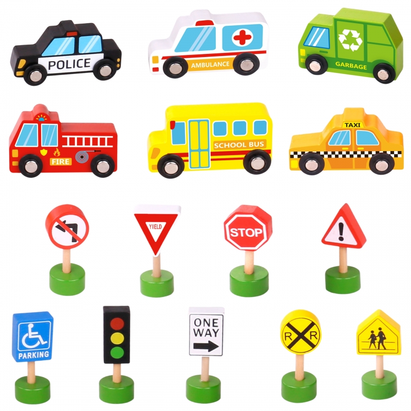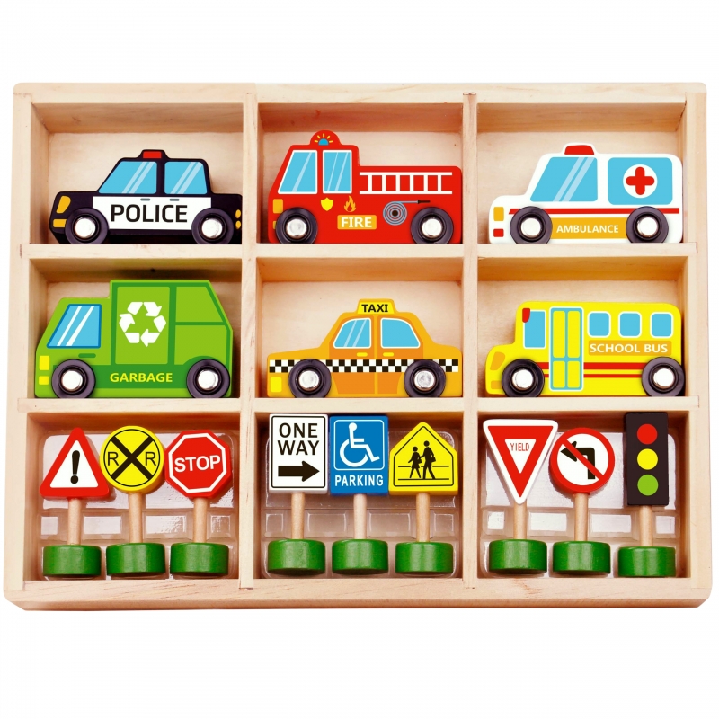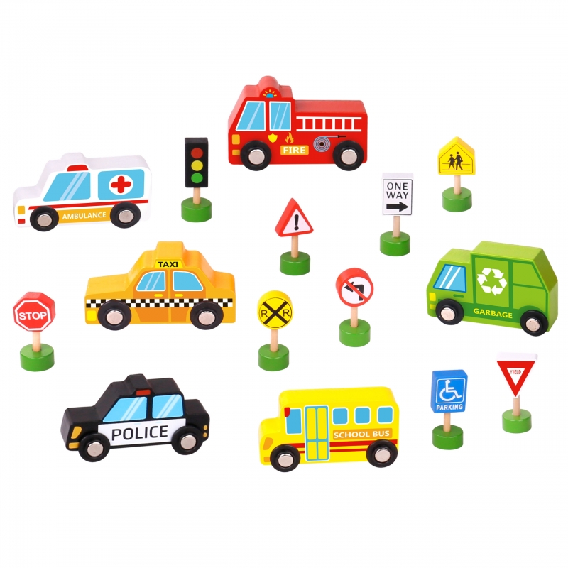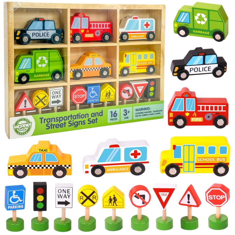 Drewniany zestaw od Woopie Green to doskonałe narzędzie edukacyjne, które poprzez zabawę wprowadza dziecko w świat zasad ruchu drogowego. W komplecie znajduje się 6 kolorowych pojazdów oraz 9 znaków drogowych, które pomagają maluchowi poznać podstawowe reguły bezpieczeństwa na drodze. Całość wykonana z trwałego drewna i bezpiecznych, nietoksycznych farb.