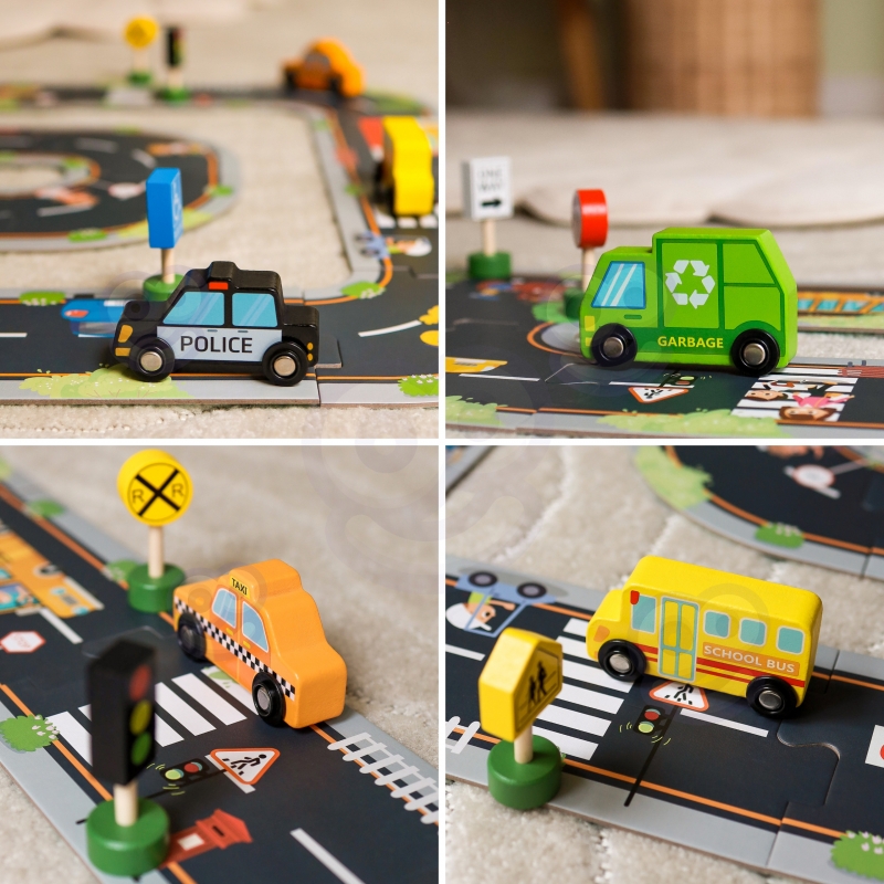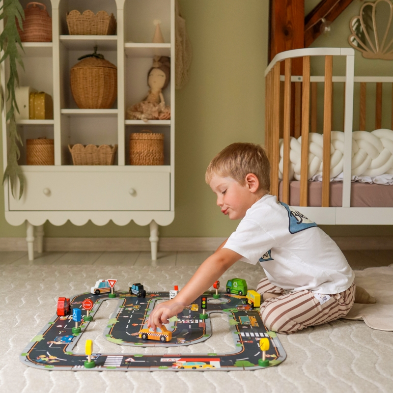 - – Rozwija wyobraźnię i kreatywność – dziecko może tworzyć własne miasta, scenariusze i sytuacje drogowe