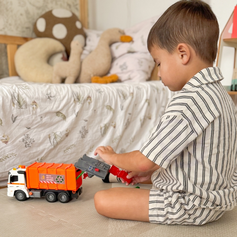 Zabawkowa śmieciarka to doskonale odwzorowany pojazd komunalny, który z pewnością zachwyci każdego małego miłośnika pojazdów miejskich. Wykonana z trwałych materiałów, z charakterystyczną kolorystyką w odcieniach pomarańczowo-białych, stanie się ulubionym pojazdem w kolekcji zabawek Twojego dziecka. Znajdziemy w niej liczne ruchome elementy i interaktywne funkcje, które sprawią, że zabawa będzie nie tylko przyjemna, ale także edukacyjna.