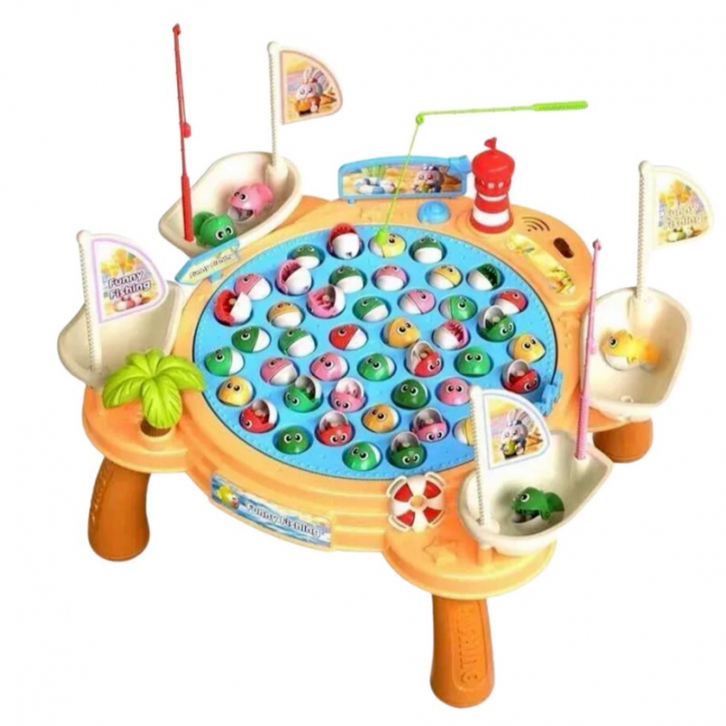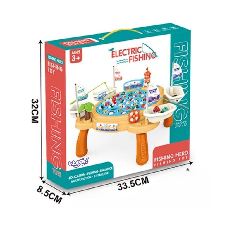 „STATEK PIRACKI” Gra Łowienie Rybek na magnes od marki Woopie to stolik do zabawy, który przenosi dzieci w fascynujący świat wędkarstwa, który uczy dziecko cierpliwości, koncentracji oraz umiejętności zręcznościowych. Ten interaktywny stolik oferuje możliwość zabawy w łowienie rybek za pomocą magnetycznych wędek, ale także dodatkową atrakcję w postaci obracającej się podstawy z rybkami. Podczas gry wydaje się muzyka, który jeszcze bardziej urozmaica zabawę! Stolik jest wyposażony w miejsca dla czterech graczy, z osobistą wędką i statkiem pirackim do odkładania złowionych rybek. Zwycięzcą zostaje osoba, która zdobędzie ich najwięcej.