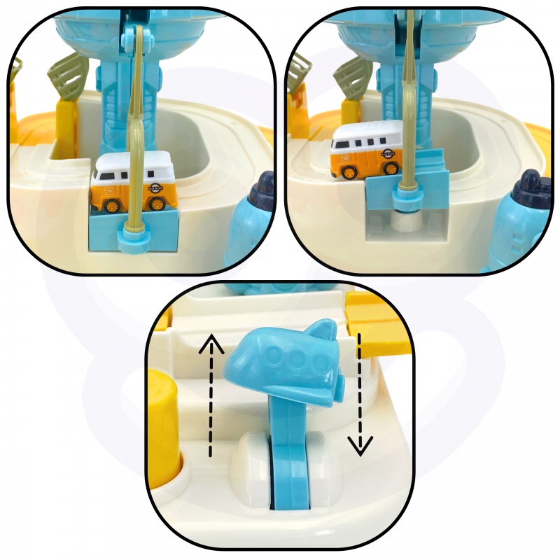 5. Most zwodzony – Po przeniesieniu przez rakietę, autko przejeżdża przez most, który można podnosić i opuszczać