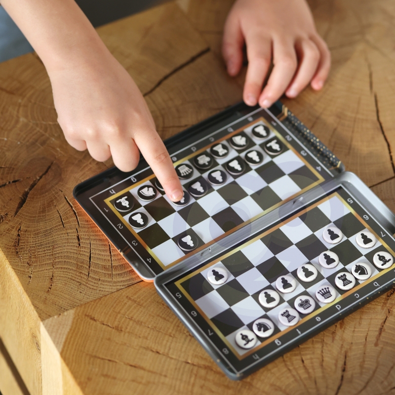 Szachy magnetyczne od Woopie to ciekawa propozycja dla osób, które dużo podróżują. Seria gier magnetycznych w mini formacie, zmieści się do każdej torebki. Gra mało waży, dzięki czemu zawsze możemy ją mieć pod ręką. Sprawdzi się podczas czekania na wizytę u lekarza, w dłuższej podróży samochodem czy samolotem. Metalowe pudełko służy nam za planszę, dzięki czemu gabaryt gry ograniczony jest do minimum.