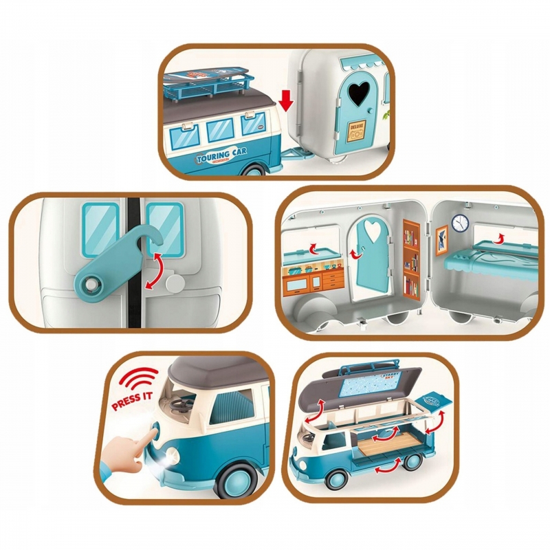 Otwórz drzwi do świata niesamowitych przygód z wyjątkowym kamperem z przyczepką od marki Woopie! Ta kolorowa zabawka w stylu retro to idealna propozycja dla małych odkrywców, którzy uwielbiają kreatywną zabawę. Kamper z przyczepą wyposażony jest w otwierane elementy, realistyczne wnętrze oraz efekty świetlne i dźwiękowe, które sprawią, że każda podróż będzie niezapomniana. To doskonały pomysł na prezent, który zachwyci każde dziecko!