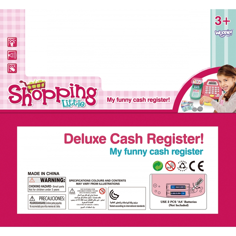 Kasa sklepowa z półką od marki WOOPIE idealna propozycja na prezent dla dziecka, która przeniesie dziecięce zabawy na wyższy poziom! Mali sprzedawcy mogą wybrać produkty, zeskanować je za pomocą skanera wydającego realistyczne dźwięki i podliczyć zakupy na prawdziwym kalkulatorze. Klientów czeka emocjonujący wybór – czy zapłacić kartą, czy monetami?