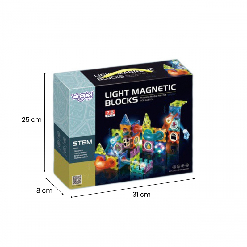 WOOPIE Klocki Magnetyczne Tor Kulkowy Świetlny 75 el.